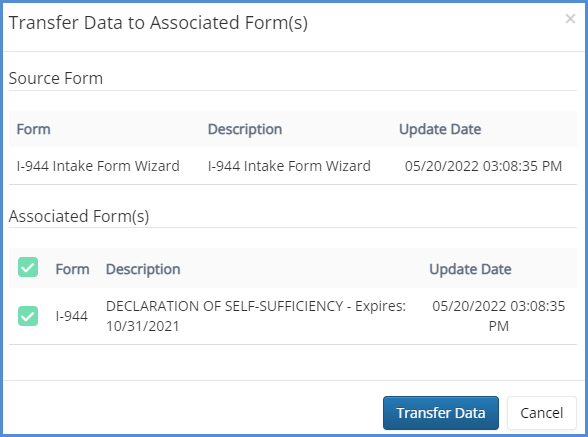- Note that you could do this in reverse as well. For example, if you're E-Filing a form such as the I-130, but have not completed the intake wizard for E-Filing, you can transfer data from the I-130 to the I-130 Intake Wizard.