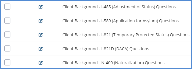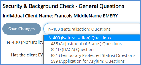 - When wanting to capture background check details from your client(s), you will see questionnaires for each specific questionnaire category.