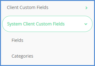 - Click on the System Client Custom Fields tab to review the Fields and Categories sub-tabs.