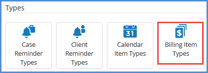 - From Administrator tools, click on Billing Item Types. Adding your own Billing Item Types allows you to categorize your billing items when creating them in later steps.