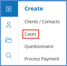 - Click on the Create Case Wizard module. Or, from the toolbar, click Create>Cases.