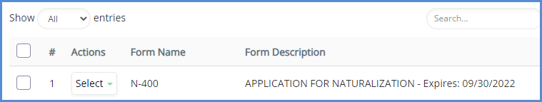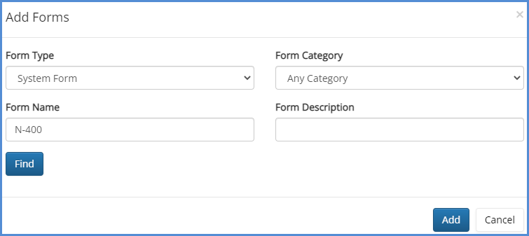 - If you don't want to search for a specific form, but rather get a list of ALL forms available, do not enter any search criteria, just click the Find button.