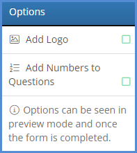 Options - Include your logo and choose to number the questions added to your intake form.