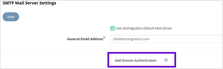 - Once in SMTP Mail Server Settings, click on the "Add Domain Authentication" button.