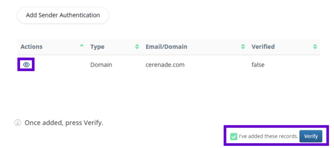 Return to the Domain Authentication Verification section by clicking on the "eye" icon ().