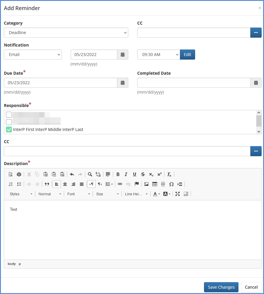 - Fill in all necessary fields, and when complete, click on Save Changes.