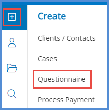 There are a few methods for collecting client information via questionnaire. They are: Email Questionnaire to a NEW CONTACT, Email Questionnaire to an EXISTING CONTACT, ANONYMOUS Questionnaire, and PASSWORDLESS INTAKE. For a vido on this topic, click here.