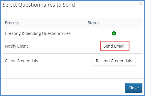 7. On the final page, you will be able to notify the client of the new questionnaire by clicking Send Email.