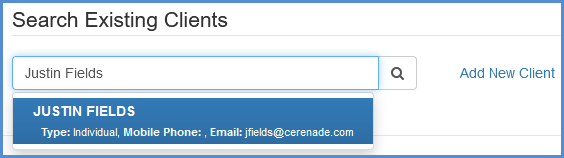 2. Search for the client by typing their name. Once the contact name appears in the results, select it.
