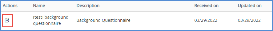 - To open a Questionnaire, click on the open icon, located under the actions column.