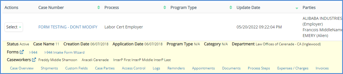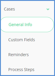 - You can also click the Advanced Search button to use additional fields to search for a case. From here, you can also search by General Info, Custom Fields, Reminders (Case), or Process Steps.