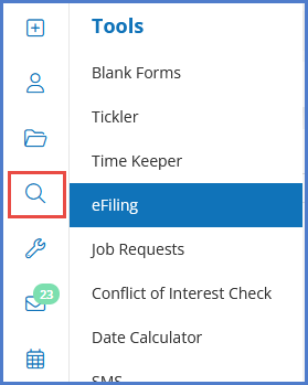 - Click Tools>eFiling.
