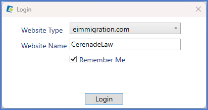 - Open the e-Filer application that's been installed on your device. Choose your Website type (you can choose either between eimmigration.com or myecms.com depending on service you're using). Enter your Website Name. The website name is the your office's virtual directory (for example, if youre site URL that you use to access the application is https://www.eimmigration.com/ABCLAWFIRM.caseworker, the website name you'd enter would be ABCLAWFIRM).