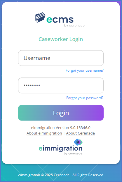 - Enter your caseworker credentials and click Login.
