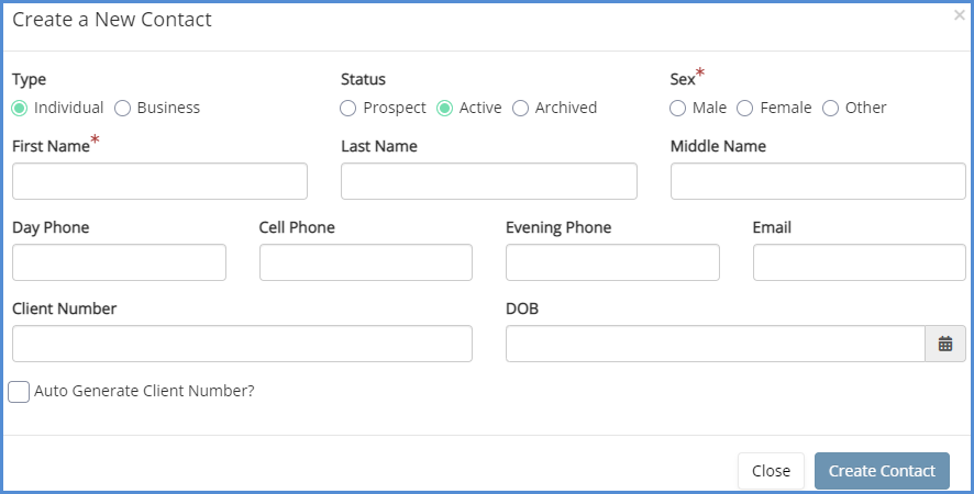 - If you would like to Create and Link a member, click New Contact enter the appropriate information, and click the Create Contact button.