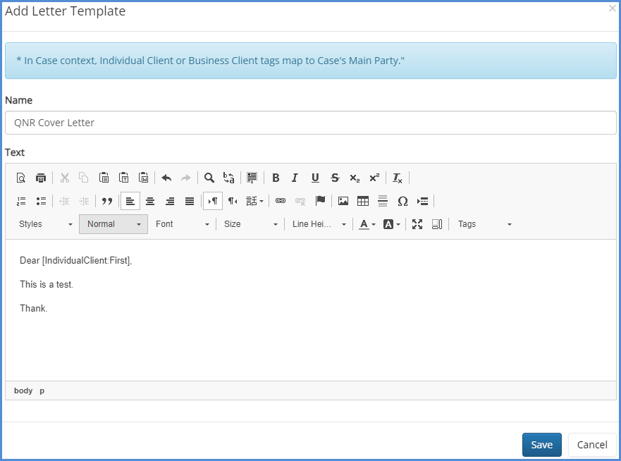 - Click on Add Letter Template.