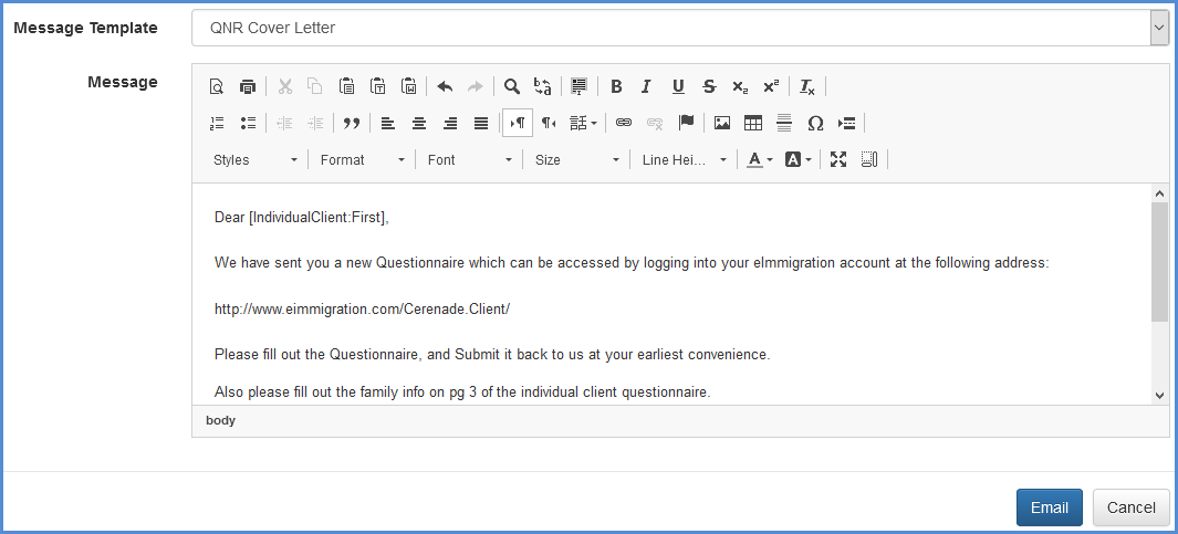 - NOTE: If you're intending to use this as a template for the message body of the questionnaire, you must remember to still link the client portal URL in the message body. This way the recipient has easy access to the client portal. You can also add any additional instructions that you have for the client at this time.