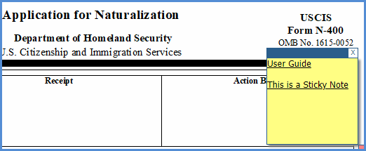 - Once you click on the sticky note icon, the cursor will change and allow you to click anywhere on the form. Doing so will add a sticky note to the form.