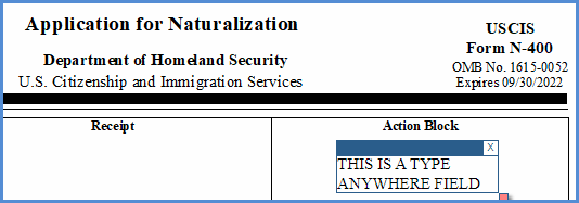 - Once you click on the type anywhere icon, the cursor will change and allow you to click anywhere on the form. Doing so will add a field to the form.