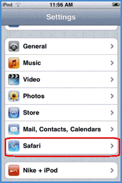 2. Tap the “Safari” tab on the Settings page. The Safari preferences screen loads.