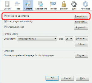 For additional information visit: http://support.mozilla.org/en-US/kb/pop-blocker-settings-exceptions-troubleshooting#w_pop-up-blocker-settings