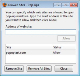 Exceptions: This is a list of sites that you want to allow to display pop-ups.